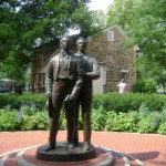 Perched atop the central pillar of This Is the Place Monument, with an excellent view of the Salt Lake Valley, are statues of pioneer leaders Brigham Young (center), Heber C. Kimball (left) and Wilford Woodruff. The 1947 monument’s grand design and statuary are by Brigham Young’s grandson, artist Mahonri M. Young.
